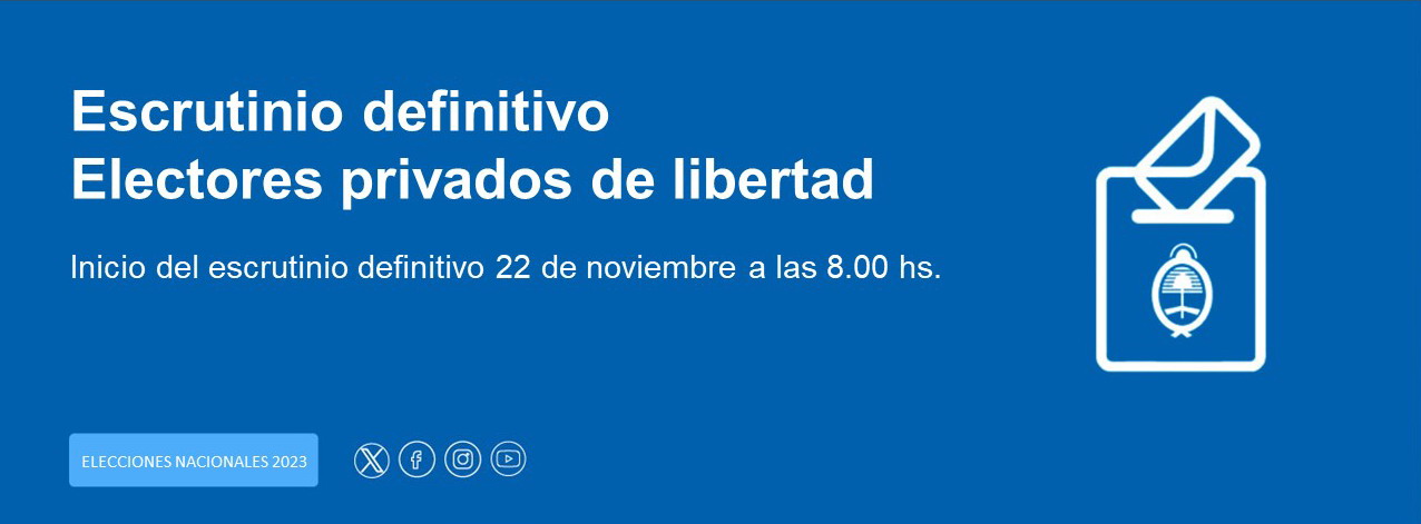 El miércoles 22 de noviembre a las 8.00 horas tendrá comienzo, en la sede de la Cámara Nacional Electoral, el escrutinio definitivo del voto de los electores privados de libertad respecto de la segunda vuelta electoral (art. 29, decreto 1291/06).